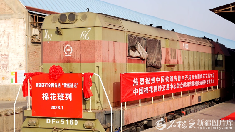 1月26日,全国首趟“雪莲速运”棉花班列即将驶出阿克苏站。刘兵兵摄 记者从中国铁路乌鲁木齐局集团有限公司获悉:1月26日,一列满载1395吨棉花的“雪莲速运”棉花班列从阿克苏站鸣笛启程,运往山东省滨州市小营站,标志着全国首趟棉花快速班列顺利开行,为推动新疆棉花棉纱产业发展、全面助力乡村振兴注入新动能。详情>>> 丨绿色通道 2025年新疆口岸进出口农产品值同比增长30.4%