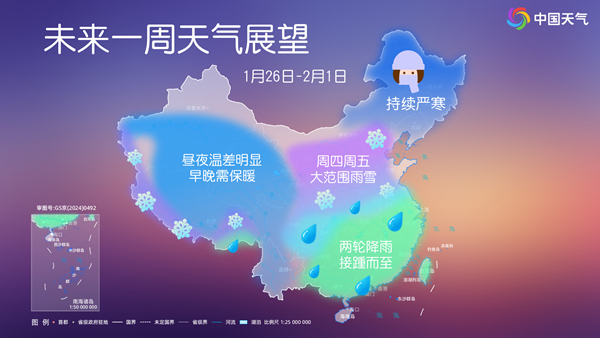 未来一周全国天气展望。图片来源/中国天气网 记者从新疆气象台获悉:本周(1月26日—2月1日)新疆大部地区将迎来两场降雪,山区局地有中到大雪,部分区域断续有阴雾(雪),气温呈波动式缓慢回升。详情>>> 丨大美新疆 近日,位于新源县的那拉提旅游风景区白雪皑皑、银装素裹。阳光照射在起伏不平的山尖和牧民的房屋、马棚牛圈上,一幅幅美丽的光影画面呈现在人们眼前;踏雪骑行的牧民,河边饮水的马儿,为寂静的冬日增添了动感;放眼望去,远处森林和山谷构成绝美的水墨丹青画面。