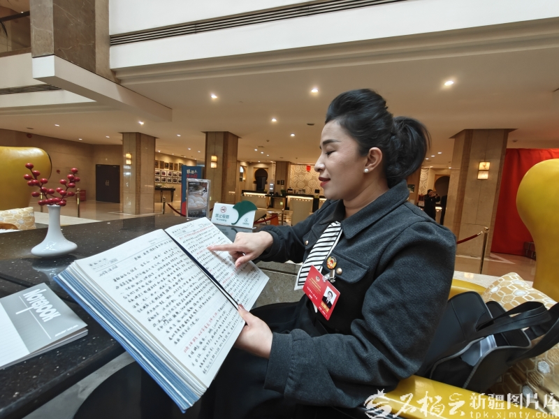 阿依努尔·哈力克委员正在介绍她准备提交的建议。石榴云/新疆日报记者 范琼燕摄 “好记性不如烂笔头,这个记录的习惯,就一直坚持下来了。”阿依努尔·哈力克微笑着说。 一页页翻下来,记者发现她的记录丰富且有条理:会议期间的报告要点、委员发言精髓、自身发言稿与建议,均按日期记录;日常履职的培训笔记、宣讲提纲、调研心得、部门回复等,也一一收录。她还用三色笔区分内容,黑笔记详情、红笔标重点与建议、铅笔则用于修改疏漏,关键要点再用圆圈着重标注,她一丝不苟的态度,仿佛跃然纸上。 翻开最新的3页记录,一页记录了联组讨论中14位委员的发言要点,字里行间透露出她对不同观点的尊重与思考;一页是她为29日下午精心准备的发言内容,字斟句酌,尽显她对履职的严谨态度;最后一页是她准备提交的关于推进残疾人康复教育服务体系建设的建议,饱含着她对残疾儿童事业的深切关怀。 这本笔记本,字里行间皆是她对履职的热忱,承载着她对群众期盼的关注与回应;它也记录着她践行高质量履职、严格要求自己的每一步足迹,见证着她的成长与担当。 阿依努尔·哈力克不仅是喀什市“母亲之家”残疾儿童服务中心的院长,更是一名心怀正义的律师。她将履职与专业、公益紧密结合,让三者相互促进、相得益彰。