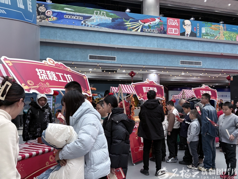 2月3日,“科学游园会——新春篇”主题科普活动现场。新疆科技馆供图 游园会的核心创意,在于将盛唐坊市的时空逻辑与当代科普理念巧妙嫁接。科技馆一楼被划分为东、西坊市,包括十大特色主题坊市,严格遵循古时“分时启闭”的规制:东市于每日11:30率先开市,西市则在14:30接续繁华。值得一提的是每日16:00至17:30的“科技馆之夜”,科学实验秀与科普灯谜竞猜轮番上演,将白日的游园兴致推向新的高潮。 十大特色主题坊市各具巧思,构成了游园的骨架与灵魂。观众手持专属的“科学游园会”手册,便可开启闯关集“币”之旅。在“毽舞飞扬”区,每一次踢毽都关乎力学平衡的实践;“壶中玄机”则让抛物线定律从课本跃入投壶的游戏之中。“巧思谜城”考验逻辑推理,“机巧乾坤”让人沉醉于鲁班锁、九连环的拆解乐趣。而“拓印福字”等非遗体验,让亲手制作的年味成为可携带的记忆。完成挑战赢取的“科学币”,可兑换成特色文创或5D影院观影券。