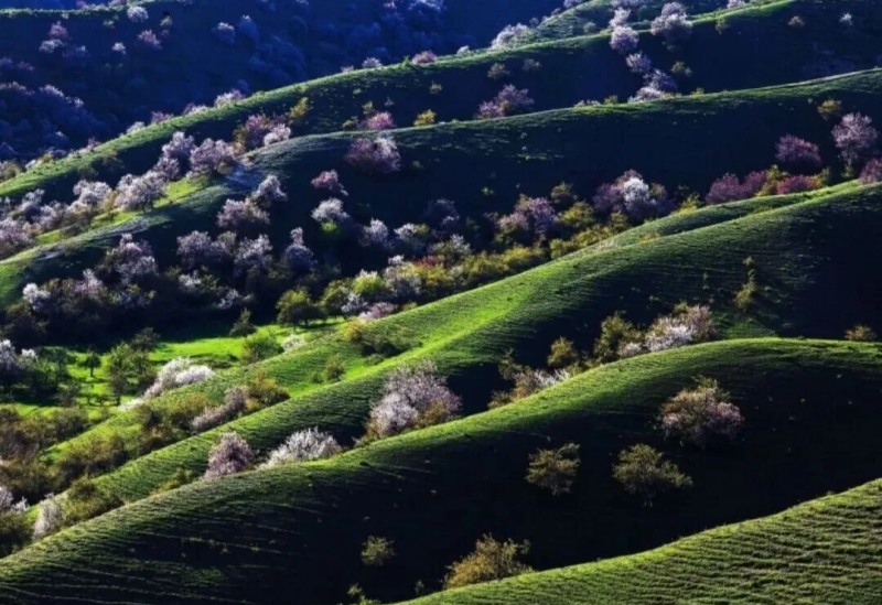 石榴云/新疆日报记者 郭倩 你想象中的新疆是什么样的?戈壁、沙漠、干旱?那你一定没去过伊犁河谷。这里年降水量达400毫米以上,山区甚至突破600毫米,是新疆最湿润的地区。