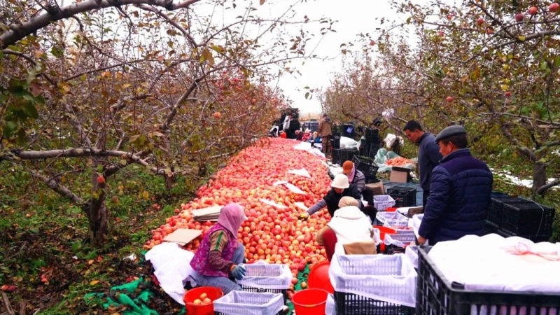 福寿山景区野果林山花绽放、芳香四溢、姿态万千。资料图片 霍城县委宣传部供 有了好气候的先天优势,这里不成为农业沃土都说不过去。年均无霜期在160天左右,让伊犁河谷成为一片富庶之地。 苹果、桃子、杏子、葡萄……各种水果在这里找到了天堂。特别是苹果,伊犁河谷是我国最早栽种苹果的地区之一。近年来,伊犁哈萨克自治州大力发展林果产业,林果种植面积达76万亩,其中苹果种植面积约23万亩。