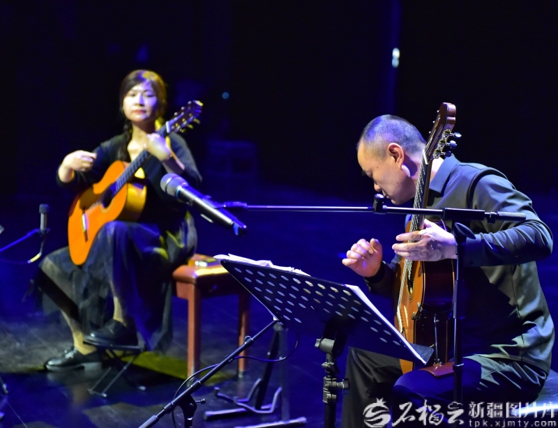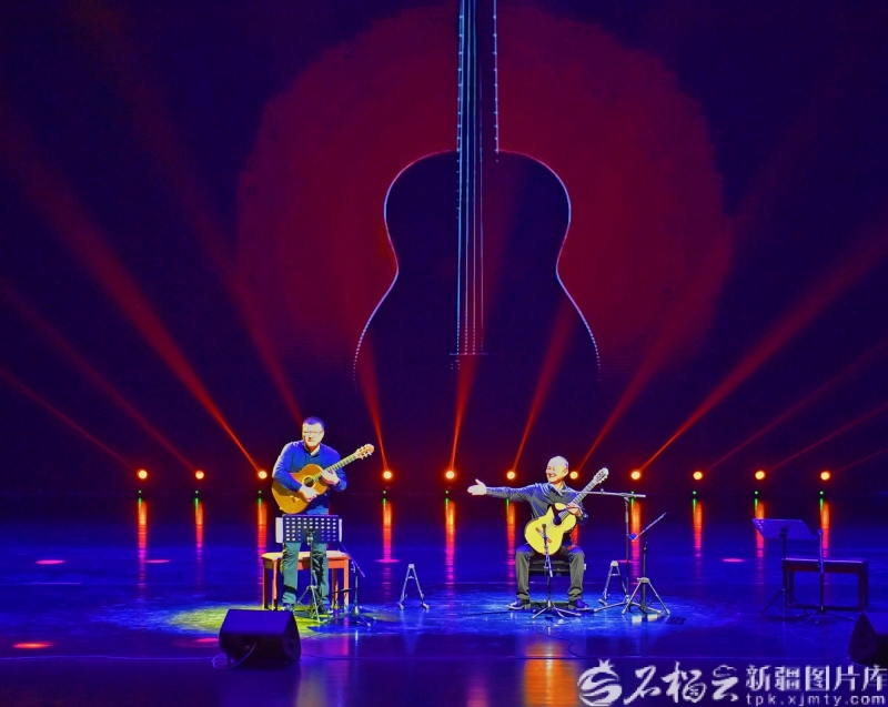 2月23日,巴音郭楞蒙古自治州首届“天山之春”音乐节吉他演奏专场,演员现场表演吉他合奏。 石榴云/新疆日报讯(记者 王立华摄影报道)2月21日至23日,巴音郭楞蒙古自治州首届“天山之春”音乐节在巴州文化艺术中心精彩上演。连续三场专场音乐会,以流行、小提琴、吉他等多元曲风,为梨城观众献上一场艺术盛宴。