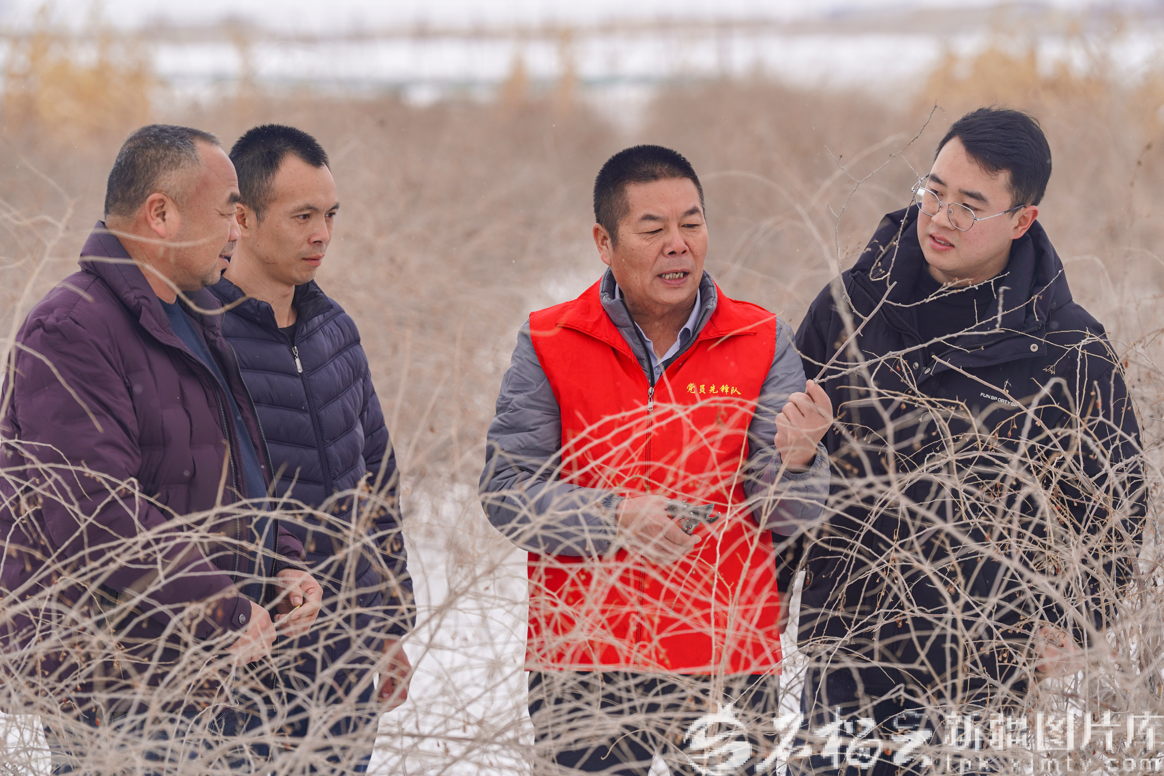 3月2日,乌苏市农技专家在西湖镇巴扎街村为枸杞种植户讲授剪枝技术,把实用农技送到种植户家门口,助农致富增收。李仁锡摄