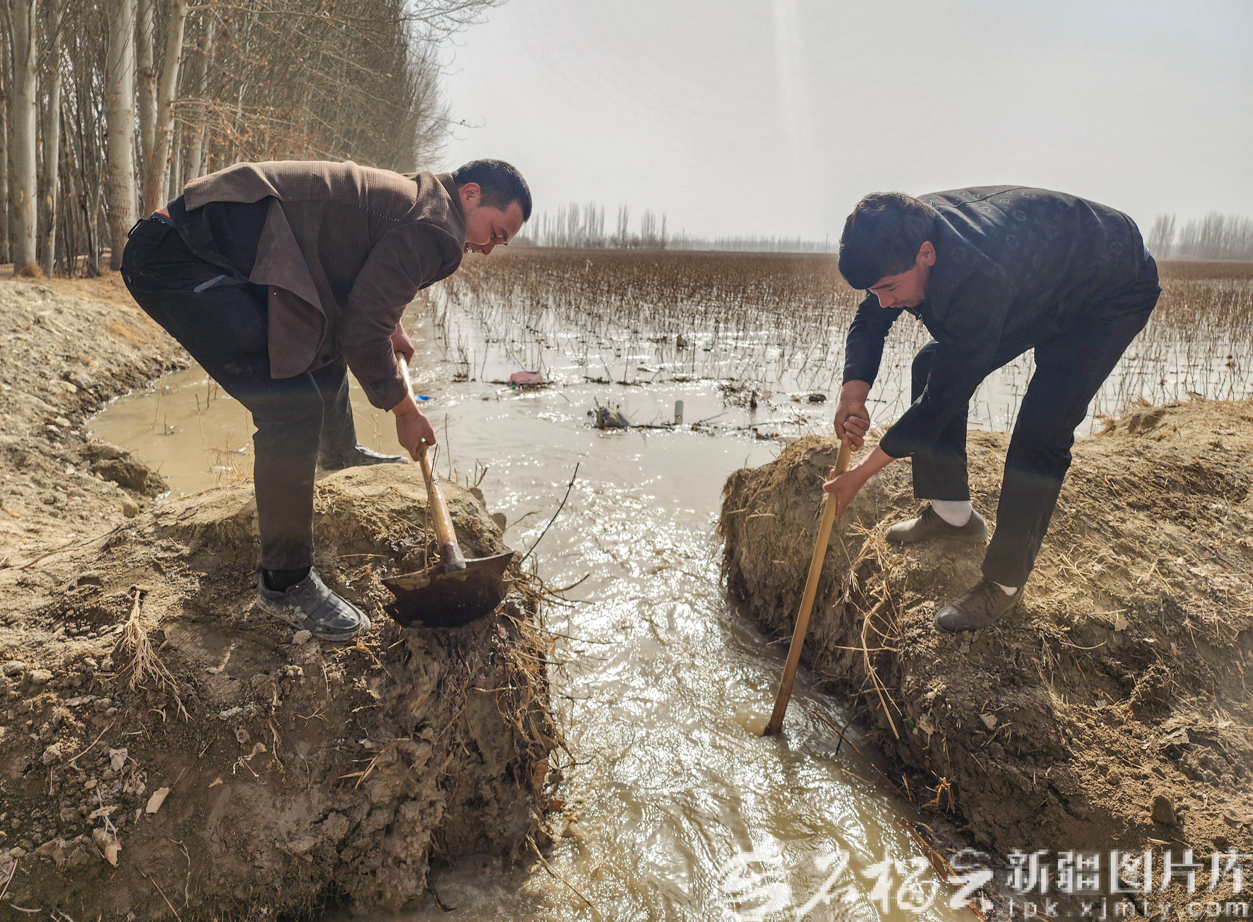 3月3日,阿克苏市阿依库勒镇阿克提坎村村民抢抓春耕有利时机,加紧开展农田春灌作业。截至目前,全市已完成春灌面积35万亩。范公平摄