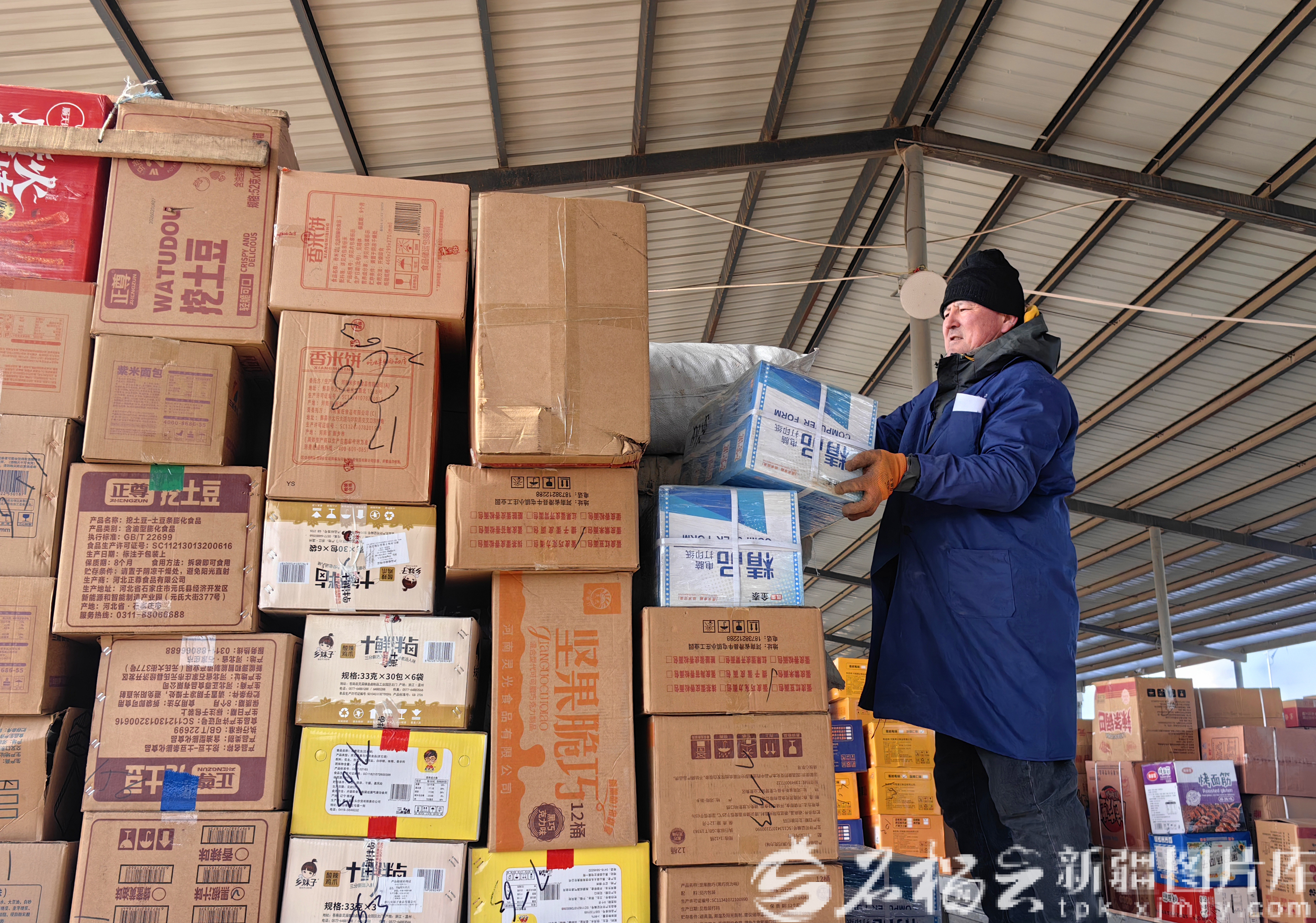 3月1日,新疆生产建设兵团第五师86团万豪物流园货运中心工人正在卸货。该物流园迎来节后货运高峰期,日均货运量突破300吨,创历年新高。吕羡林摄