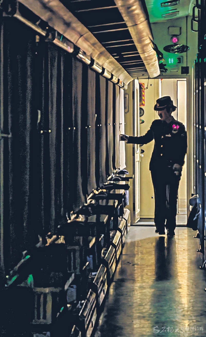 3月1日凌晨,K4126次临时旅客列车列车长付瑞雪在车厢内巡查。