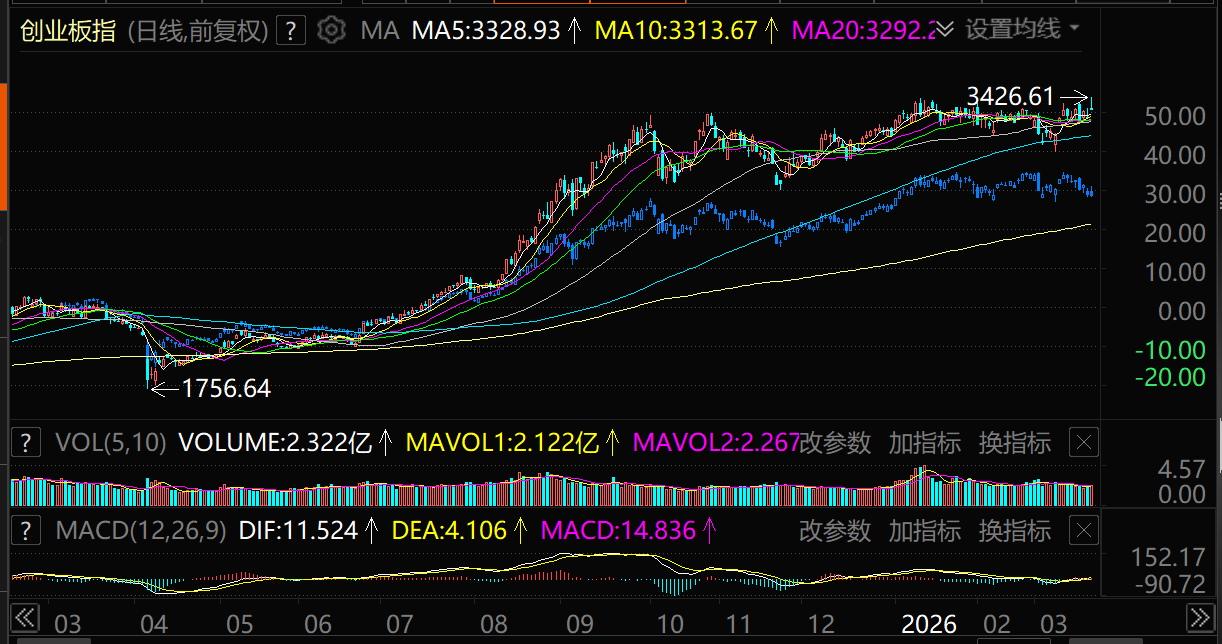 天山网-新疆日报讯(记者王永飞报道)A股三大指数今日涨跌不一,沪指失守4000点大关,创业板指盘中创2021年12月以来新高。截至收盘,沪指跌1.24%,收报3957.05点;深证成指跌0.25%,收报13866.20点;创业板指涨1.30%,收报3352.10点。沪深京三市成交额达到2.3万亿元,较昨日放量1756亿元。 行业板块呈现普跌态势,光伏设备、能源金属、电池板块逆市上涨,通信服务、软件开发、化学原料、化学纤维、石油石化、计算机设备板块跌幅居前。 个股方面,上涨股票数量不足700只,近40只股票涨停。光伏板块大涨,上能电气、首航新能20%涨停,中利集团、永臻股份、国晟科技涨停。 行业资金方面,截至收盘,光伏设备、通信设备、电池等净流入排名靠前,其中光伏设备净流入72.81亿元。
