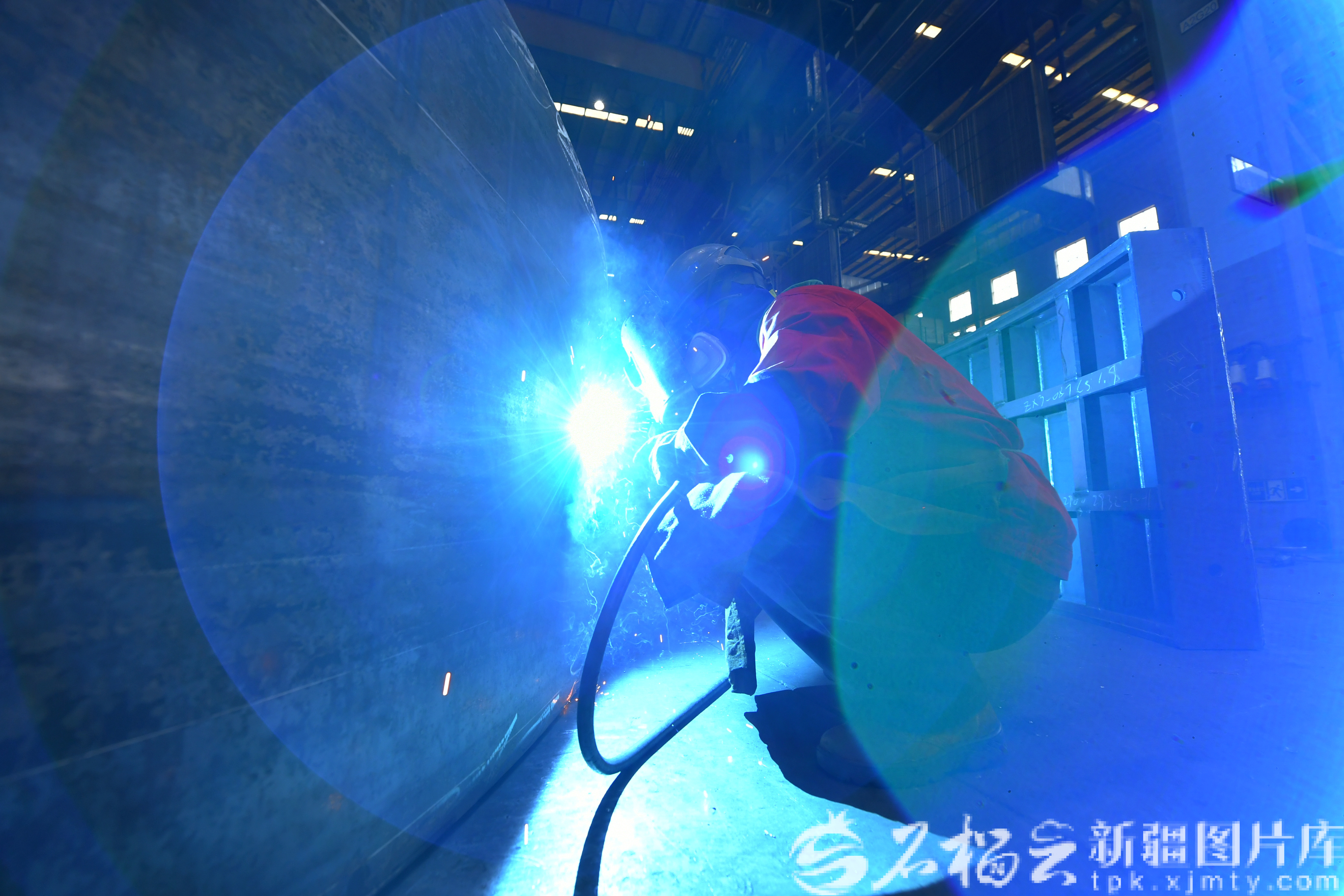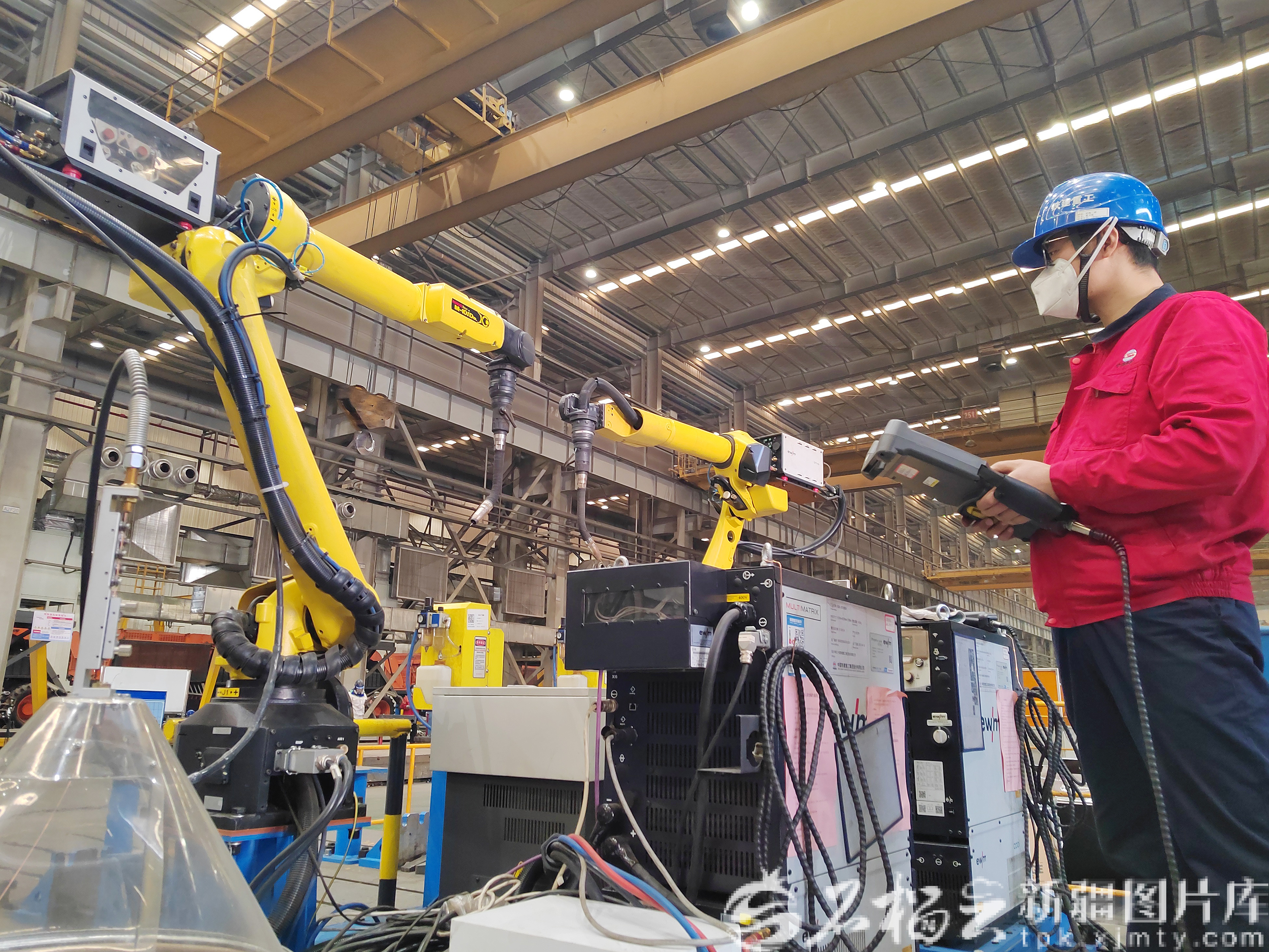 3月25日,工作人员操控焊接机器人完成焊接工作。