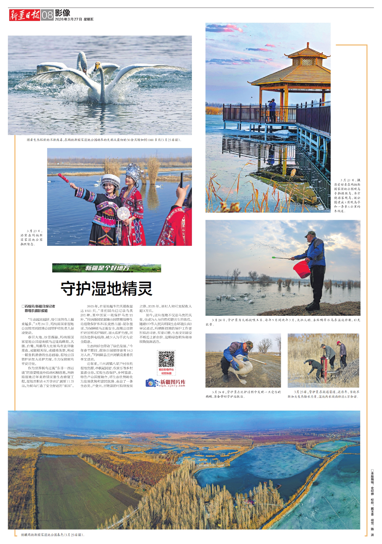 天山网-新疆日报讯(记者蔡增乐摄影报道)“生态越来越好,吸引来的鸟儿越来越多。”3月24日,玛纳斯国家湿地公园管理局湿地公园管护站负责人赵凌俊说。 春回大地,冰雪渐融,玛纳斯国家湿地公园迎来候鸟迁徙高峰期。天鹅、白鹭、鸬鹚等大批候鸟在此停歇觅食,或翱翔天际,或嬉戏休憩,构成一幅生机勃勃的生态画卷。湿地公园管护站加大巡护力度,全力保障候鸟平安迁徙。 作为世界候鸟迁徙“东非—西亚线”的重要能量补给站和栖息地,玛纳斯湿地近年来持续实施生态修复工程,湿地面积由4万余亩扩展至11万亩,为候鸟打造了安全舒适的“家园”。 2025年,在湿地越冬的天鹅数量达1021只。“目前园内已记录鸟类281种,其中国家一级保护鸟类11种。”玛纳斯国家湿地公园管理局野生动植物保护科科长麦然古丽·胡尔曼说。为保障候鸟迁徙安全,湿地公园管护站加密巡护频次、加大巡护力度,同时改造供电线路,减少人为干扰与安全隐患。 生态向好也带动了绿色发展。“今年春节期间,湿地公园接待游客14.3万人次。”玛纳斯县兰州湾镇党委委员李文成说。 近年来,兰州湾镇八家户村依托湿地资源,串联起民宿、农家乐等乡村旅游业态,实现生态保护、乡村旅游、特色产业深度融合,将生态优势转化为发展优势和富民优势,走出了一条生态美、产业兴、百姓富的可持续发展之路。2025年,该村人均可支配收入超3万元。 如今,这片湿地不仅是鸟类的天堂,也成为人与自然和谐共生的典范。随着《中华人民共和国生态环境法典》审议通过,玛纳斯湿地的保护工作更加有法可依、有章可循,生态文明建设不断迈上新台阶,这颗绿色明珠将持续焕发新活力。