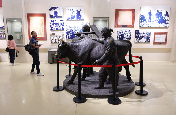 2025年10月8日,游客在河北平山县西柏坡纪念馆参观。新华社发(梁子栋摄) 1000余公里外,西北古城甘肃会宁,“中国工农红军第一、二、四方面军会师纪念塔”巍然矗立。三塔环抱的雄姿,述说着90年前名垂青史的不朽功勋,昭示了中国共产党永葆生机的精神密码。