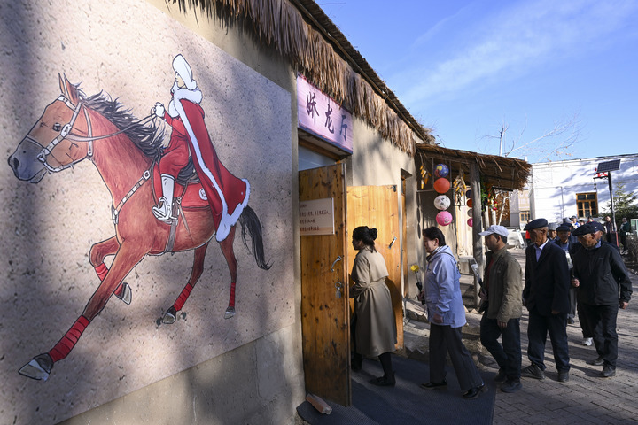 2026年4月3日,人们排队进入新疆昭苏县灯塔知青馆娇龙厅献花,追忆贺娇龙同志为当地经济社会发展、文旅品牌打造、农牧民增收致富作出的贡献。新华社记者 胡虎虎 摄 噩耗传出,远近的农牧民自发送她最后一程。在百姓心中,这朵“娇龙”永不凋零。
