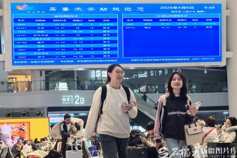 石榴云/新疆日报讯(记者 蔡增乐摄影报道)“这个假期车次多,出行特别方便。”4月6日,在乌鲁木齐站准备乘车出行的旅客李文华说。随着清明小长假进入尾声,新疆铁路迎来返程客流高峰,运输组织平稳有序,各车站客流持续高位运行。