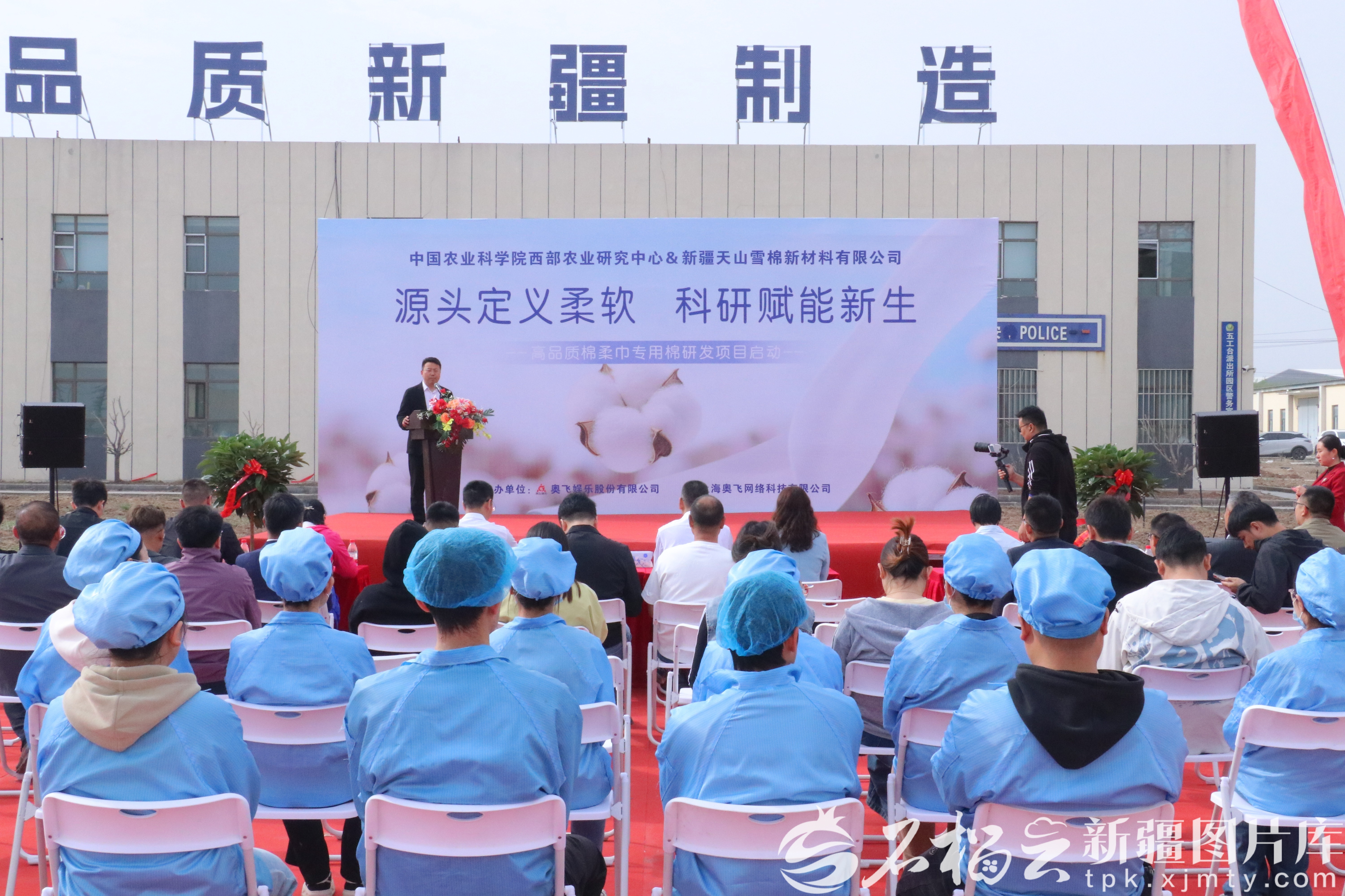 4月10日,中国农业科学院西部农业研究中心与新疆天山雪棉新材料有限公司签约揭牌仪式现场。刘鑫承摄